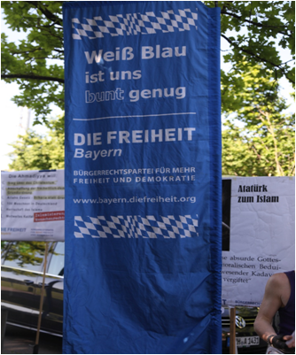 Am Rande sei noch folgender Transparentspruch von DIE FREIHEIT zitiert: „Weiß-Blau ist uns bunt genug.“